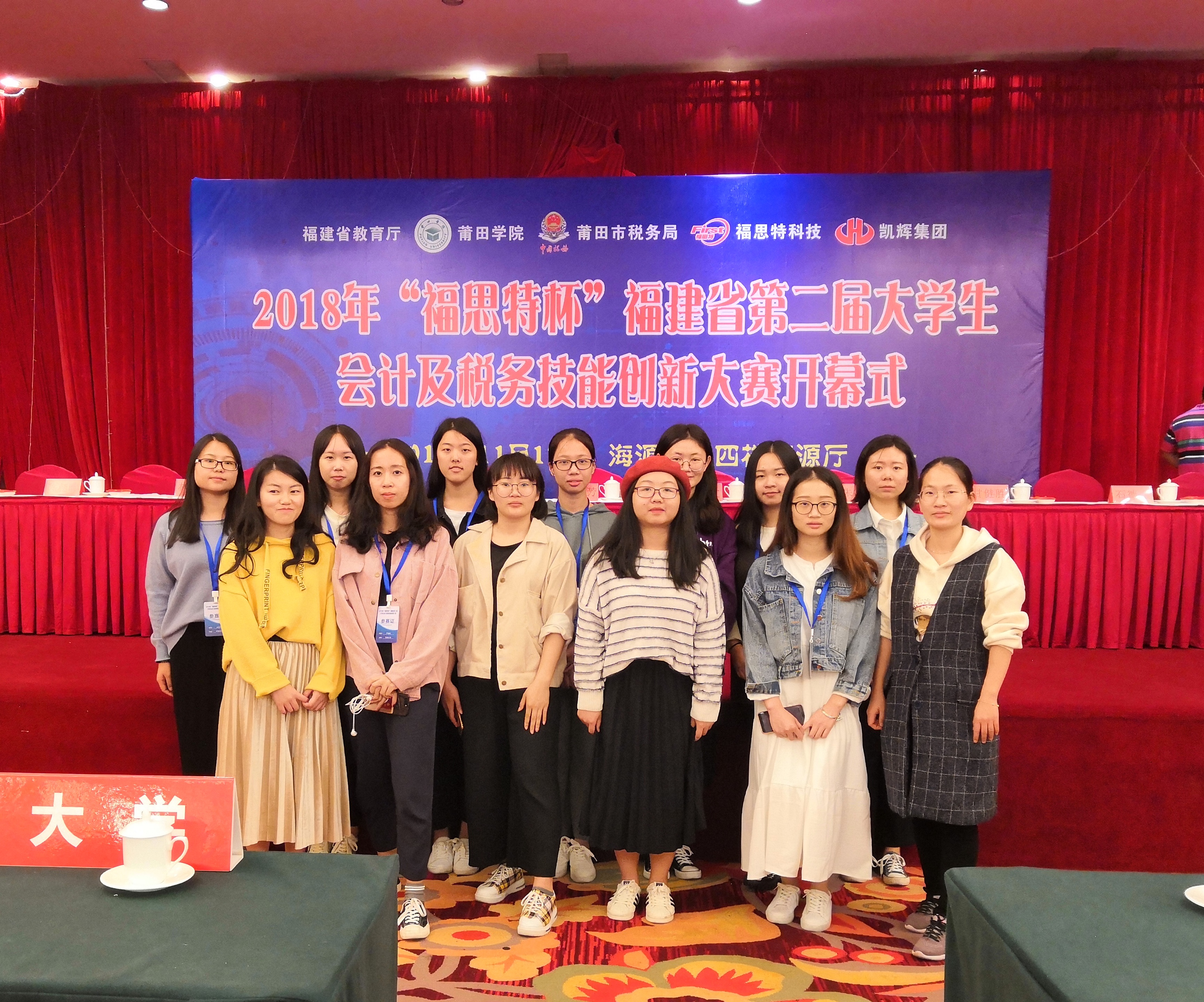 2018年“福思特杯” 第二届福建省大学生会计及税务技能大赛是由福建省教育厅主办、莆田学院与莆田市税务局联合承办。 本次比赛共吸引来自福州大学、华侨大学、福建农林大学、kaiyun体育网页登录入口等41所院校近500名参赛选手及指导教师前往参加比赛。我校共有12名学生在林秋花老师的带领下赴赛。