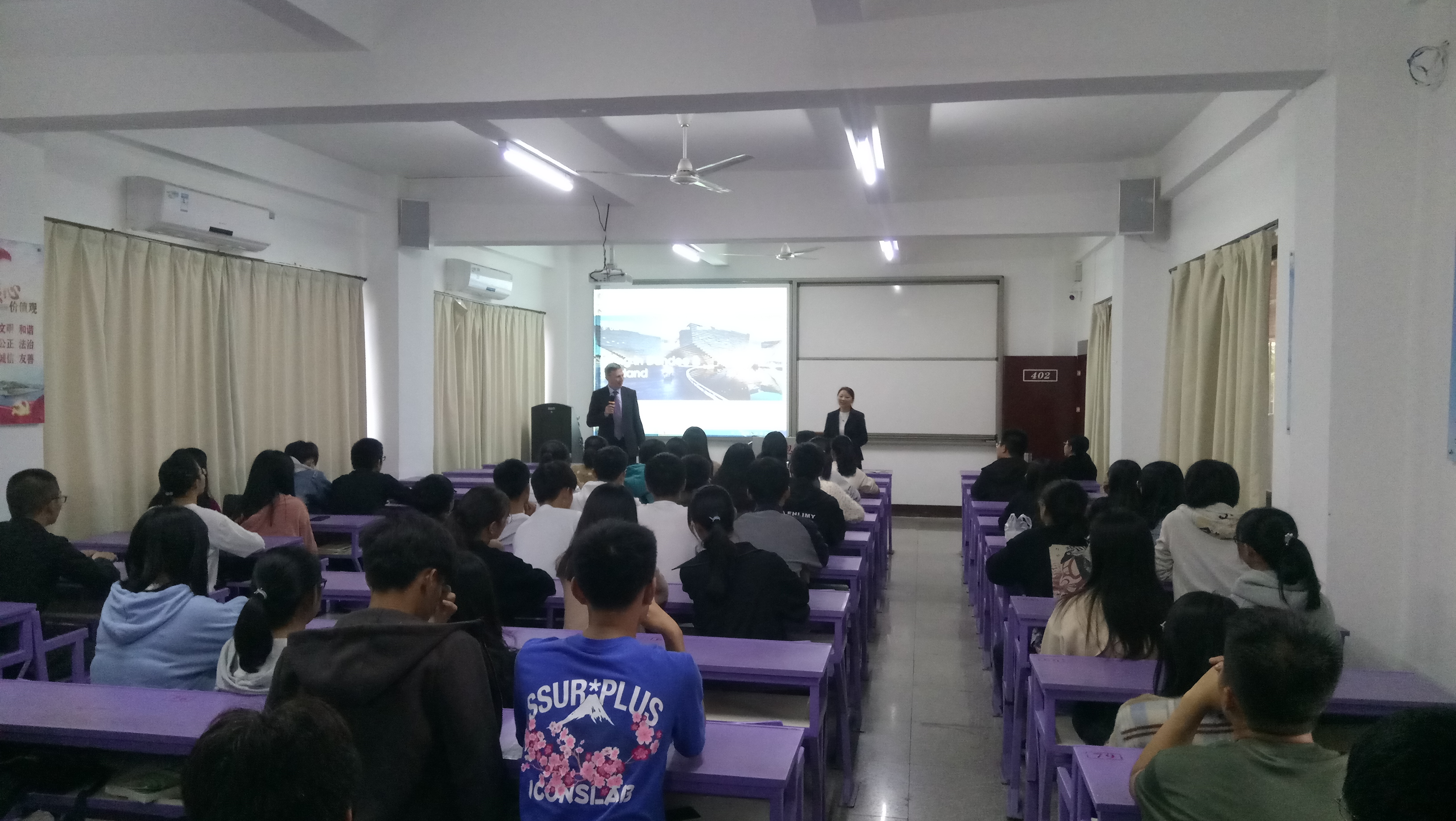 当天下午,国际合作与交流与kaiyun体育网页登录入口、工程技术学院联合举办了留学宣讲会。会上,马克巴索副校长热情地向学生们介绍了阿伯泰邓迪大学的地理位置、苏格兰城市风情等校舍信息,并鼓励学生们不要畏惧英语学习,你们远比自己想象的要优秀。阿伯泰代表黄雅玲向两院学生详细介绍了英国阿伯泰大学办学的基本情况,计算机、网络安全等学科特色以及与我校合作项目的开展情况。中国区代表王燕平就现有的留学合作模式进行了介绍。随后,韩勇副处长就学校设立出国留学专项基金、开设出国留学英语(雅思)培训班等情况作了补充说明。(国际合作与交流处/文图)