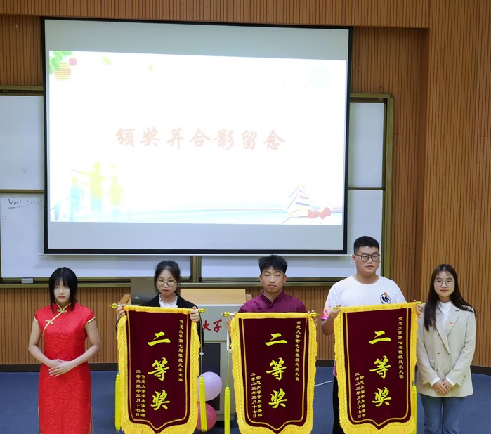 在校级比赛中,21会计学1班通过精彩的幻灯片展示、唱歌、小品表演,获得了全场观众的热烈反响,最终获得二等奖;20财务管理1班以一曲《记念》、手势舞和朗诵带动起现场氛围,最终获得三等奖。