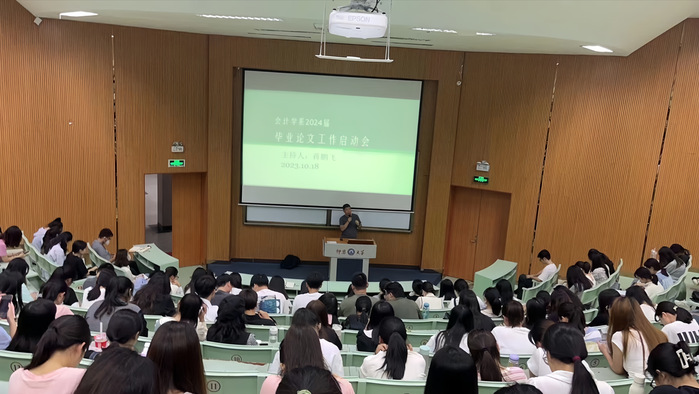 10月18日下午,会计学系于第一教学区和昌教学楼乐之讲堂召开了2024届毕业论文动员会。本次动员会由会计学系主任蒋鹏飞老师主讲。会计学系2024届毕业论文指导老师以及会计学系全体毕业生共三百余人参加了本次会议。