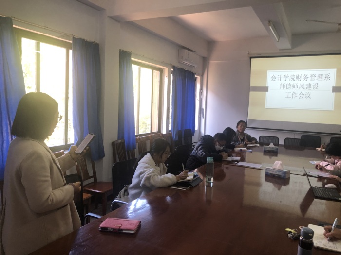 为了全面贯彻党的教育方针,加强学院师德师风建设和教师职业道德修养,提升教师教书育人、为人师表的自觉性,kaiyun体育网页登录入口财务管理系于2023年12月7日下午在曼谷楼306组织了一场师德师风建设主题的教学研讨会,本次会议由党总支书记兼副院长任敏老师主持,出席人员包括财务管理系全体教师。
