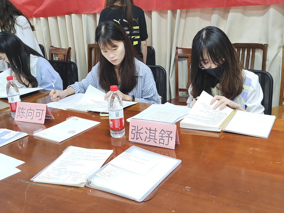 老师们细心地翻阅一本本笔记按照评分标准对笔记给予恰当的分数保证评分的公正客观。最终在教师们层层筛选下评选出了优秀笔记,学院也将把优秀笔记带到校赛中进行新一轮的评选。