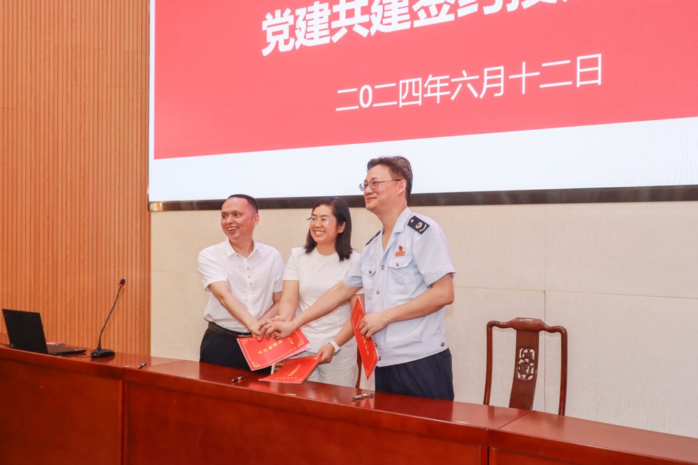此次活动,税校企三方领导均发表重要讲话。程如平副书记首先进行了热情的开场致辞,他强调,党建工作在学校及学院发展中占据重要地位,而税校企党建共建是推进产教融合、校企合作的重要途径。詹文欣局长指出,税校企三方党建共建有利于信息共享、资源整合、优势互补,能够更好助力学院各项工作的开展。任剑锋会长表示,要通过推进税校企三方党建共建融合发展,充分发挥各自资源优势,实现合作共赢。随之,税校企三方进行了签约及授牌仪式。