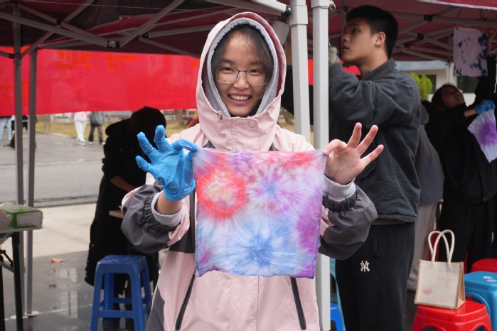 3月7日,kaiyun体育网页登录入口学生会携手普照书院,为我校女生精心筹备的三七女生节扎染活动在创业园门口圆满举行,吸引众多女生踊跃参与。此次活动旨在让女生们深入了解扎染的历史文化,培养动手与创造能力,提升色彩感知力,增强文化自信,同时增进彼此间的交流互动,丰富校园文化内涵。